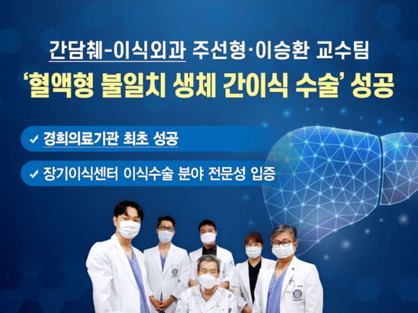 [메디컬프라임 윤성종 기자] 강동경희대병원 간담췌-이식외과 주선형 교수, 이승환 교수팀이 경희의료기관 최초로 혈액형 불일치 생체 간이식에 성공했다.