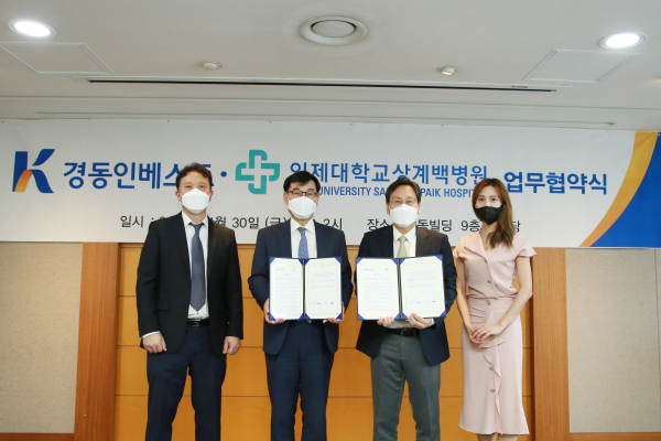 이날 협약식에는 상계백병원 고경수 원장과 경동인베스트 정승진 대표를 비롯한 상계백병원 장동균 홍보실장, 경동인베스트 경영기획팀 우영진 상무, 강서은 대외협력실장 등이 참석했다.